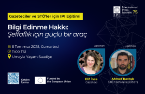 Uluslararası Basın Enstitüsü (IPI), Nisan 2024’ten bu yana yürüttüğü proje kapsamında bilgi edinme hakkının Türkiye’de nasıl uygulandığını araştırarak kurumların şeffaflığını ve hesap verebilirliğini artırmaya yönelik çalışmalarını sürdürüyor. IPI, ilk olarak Eylül 2024’te, 50’den fazla gazeteci, sivil toplum kuruluşu (STK) ve avukatın katılımıyla yaptığı “Bilgi Edinme Hakkını Kullanma Alışkanlığı” başlıklı anketin